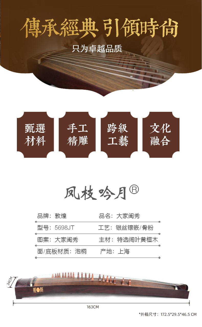 敦煌牌 古筝 5698JT 凤枝吟月 大家闺秀 自营