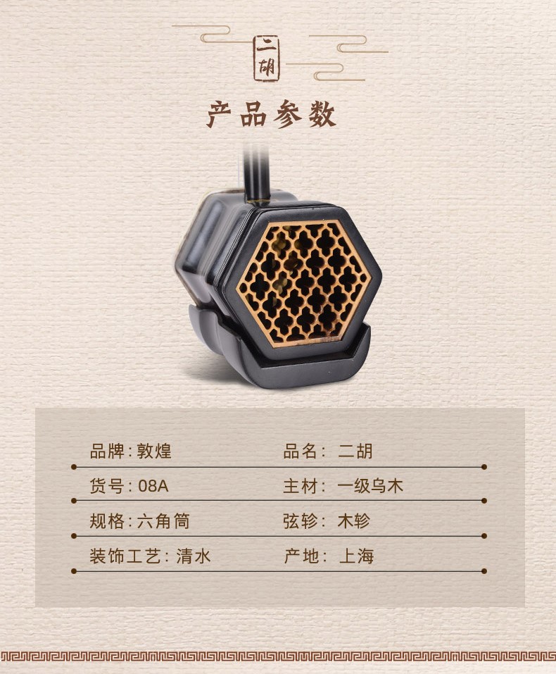 敦煌牌二胡 08A 一级乌木 木轸 自营